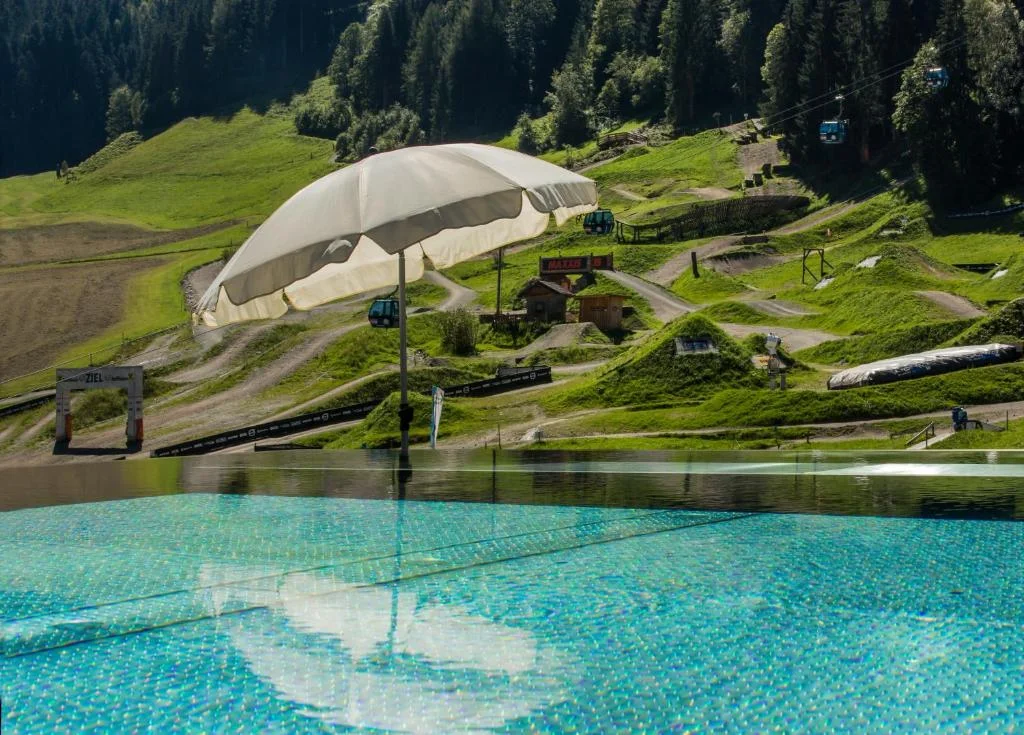 Die Zimmer sind stilvoll und gemütlich eingerichtet und verfügen meist über einen Balkon mit herrlichem Blick auf die Berge. Nach dem Biken kannst Du Deine Muskeln im Spa-Bereich in der finnischen Sauna entspannen oder im beheizten Infinity-Panorama-Pool noch einmal den Blick auf die Berge genießen.
